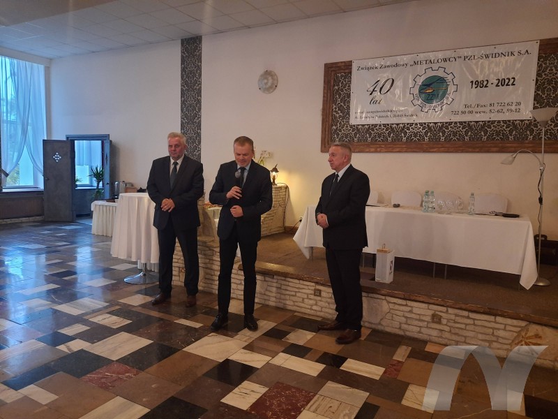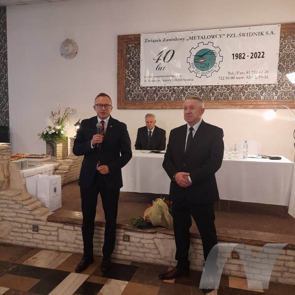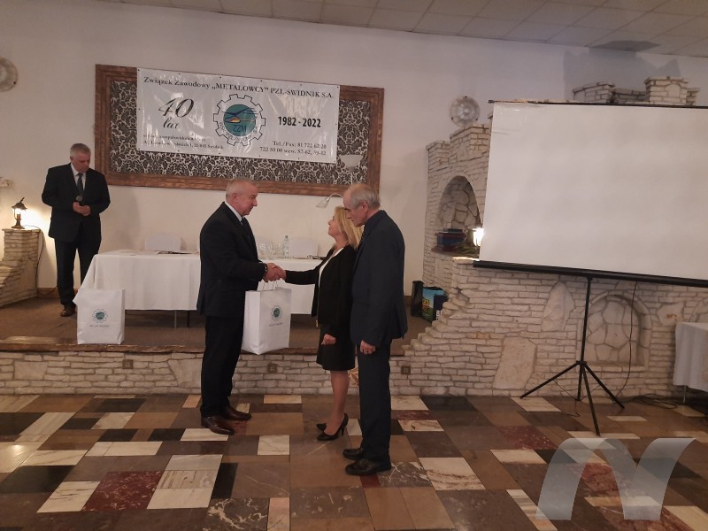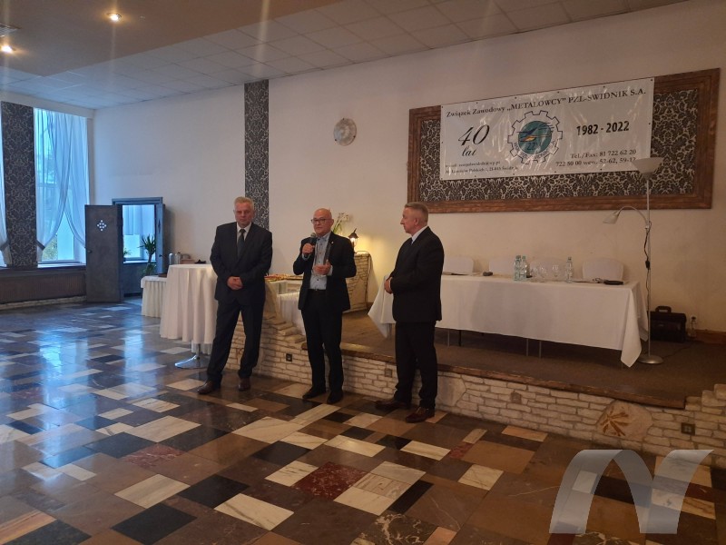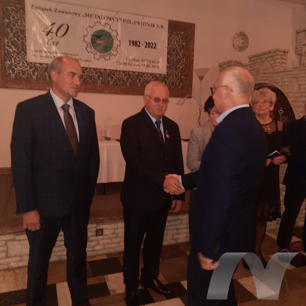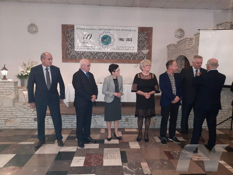 Dnia 30 września w lokalu gastronomicznym"Lachówka" odbyły się główne uroczystości jubileuszowe z okazji 40-lecia Związku Zawodowego "METALOWCY". W uroczystości udział wzięli poseł RP na Sejm Artur Soboń, władze miasta z udziałem burmistrza Waldemara Jaksona, starosty Łukasza Reszko, przewodniczący OPZZ p. Andrzej Radzikowski, przewodniczący Federacji Metalowców i Hutników p. Mirosława Grzybka. Dyrekcji "Leonardo"PZL Świdnik p. Śliwa, przewodniczący ZNP p. Ewa Kiernicka, przewodniczący Związku Górnictwa "Bogdanka" p. Jadwiziuk Grzegorz, przewodniczące Z.Z. w PZL p. Andrzej Krupa, p. Jan Daniło, p. Piotr Sadowski, przew. Zbigniew Kwiatkowski oraz pracownicy zakładu członkowie Związku, emeryci i renciści. Uroczystości rozpoczęto wprowadzeniem sztandaru Z.Z. "Metalowcy". Obecny przewodniczący p. Jan Siedlecki powitał zaproszonych gości a następnie odczytał sprawozdanie z 40-letniej działalności po czym nastąpiła prezentacja MULTYMEDIALNA dorobku Związku. W dalszej części uroczystości nastąpiło wręczenie medali i odznaczeń dla grupy założycielskiej oraz pozostałych osób. Za odznaczenia podziękował najstarszy związkowiec. Uroczstości zakończono lampką szampana i przepysznym tortem. Dziękujemy p. Zdzisławie Michalak za treść artykułu a za zdjęcia p. Antoniowi Flisowi.
